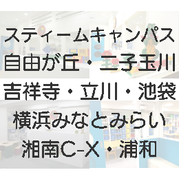 スティームキャンパス横浜みなとみらいのあるみなとみらい東急スクエア①4Fでは、子育て応援企画「キッズ応援キャンペーン」が実施中です。スティームキャンパス横浜みなとみらいでは、このキャンペーンの特典として、通常クラス体験の体験料半額を用意しています。 |