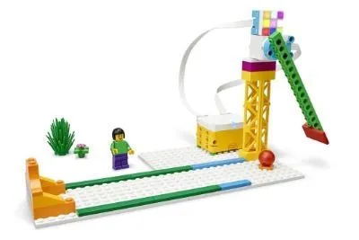 ブロック教材の多彩な部品を選択しながら、ゴルフコースをデザイン、作成し、必要に応じて回転スピード、回転数などプログラムを修正します。