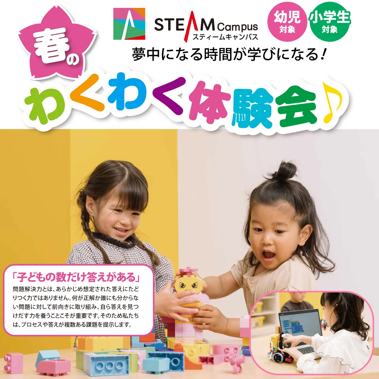 STAEM Campus吉祥寺・横浜みなとみらい・立川・二子玉川・池袋・浦和・湘南C-Xの各キャンパスでは、この春「春のわくわく体験会」を開講いたします。