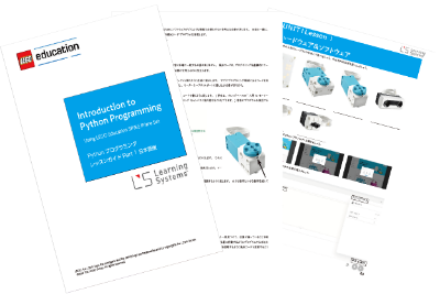 SPIKEプライムを使って、Pythonプログラミングのレッスンができる、レッスンガイドと生徒用のワークシート(Part1、Part2)を付属したセットです。Part1では、Pythonプログラミングの入門編のUnit1、モーターの使い方を学ぶUnit2、センサーの使い方を学ぶUnit3、Part2はループで繰り返し処理を学ぶUnit4、条件分岐処理を学ぶUnit5、ハードウェア、ソフトウェアのトラブルシュート(デバッグ)の方法を学ぶUnit6で構成されています。各ユニットは4~7つのレッスンで構成されており、生徒自らが考え、ハンズオン学習を通してPythonプログラミングを学ぶレッスンとなっています。先生用のレッスンガイドに加え、生徒用のワークシートも用意してあります。レッスンガイドおよびワークシートはPDFファイルをCD-ROMに収録してのご提供となります。