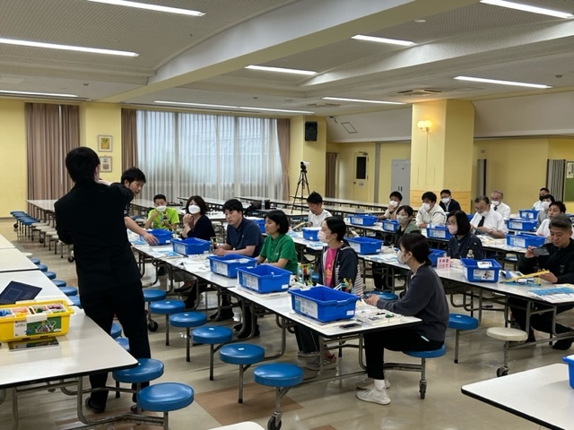 教材の概要説明から始まり、約1時間半の研修でした。最初のうちははじめてレゴに触るということで緊張していらっしゃるような面持ちの先生もいらっしゃいましたが、最後にはみなさん明るい笑顔で「楽しかったです、ありがとうございました」とおっしゃっていただきました。先生方には大変満足していただいたかと存じます。